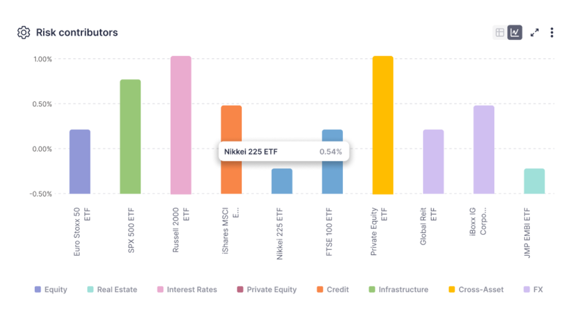 Get a transparent, position-based view of tail risk across your entire portfolio. The result is a clear breakdown of CVaR at both strategy and portfolio level, with detailed contributions by factor, sector, asset class, or any category you choose, giving you a precise understanding of where your risk truly comes from.